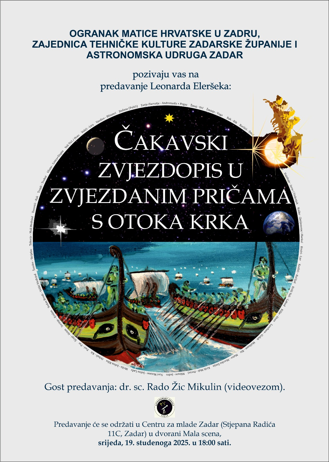 Predavanje “Čakavski zvjezdopis u zvjezdanim pričama s otoka Krka” u organizaciji Ogranka Matice hrvatske u Zadru, Zajednice tehničke kulture Zadarske županije i Astronomske udruge Zadar održat će se 📅 19. studenoga 2025. u 18:00...