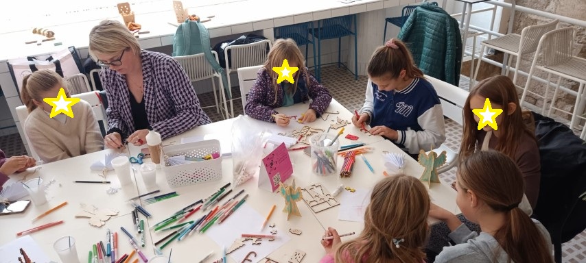 Tijekom radionice sudionici su izrađivali božićne ukrase od papira, šperploče i kombiniranih materijala, koristeći različite tehnike poput rezanja, lijepljenja, brušenja i bojanja. Kroz praktičan rad djeca su razvijala finu motoriku, kreativnost i tehničke vještine, uz poticanje maštovitosti i samostalnog izražavanja.