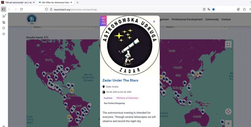 ASTRONOMSKA UDRUGA ZADAR obilježava Svjetski tjedan svemira od 26. rujna do 10. listopada 2025. Tijekom ovih dana građani i posjetitelji grada moći će uživati u nizu događanja posvećenih astronomiji i istraživanju svemira. Program je započet na Noći istraživača na Novom kampusu Sveučilišta u Zadru, 26. rujna 2025. godine, a nastavlja se kroz bogat program.