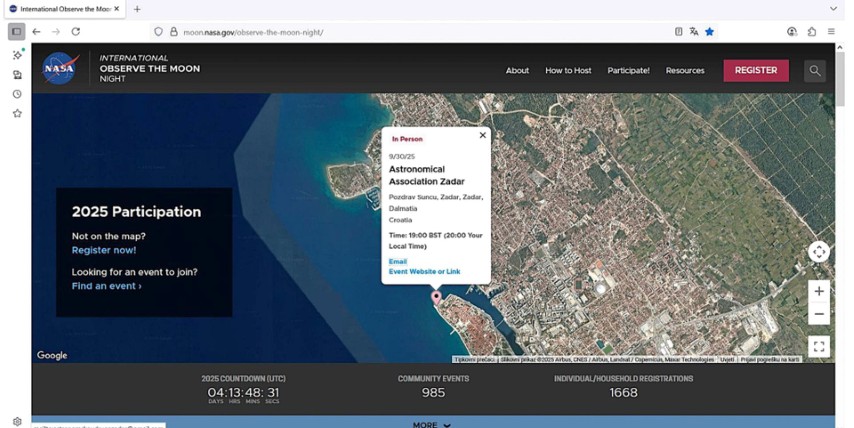 Na više lokacija u Zadru organizirana su promatranja dnevnog i noćnog neba kroz teleskope – od Sunca i njegovih pjega, preko Mjeseca i planeta, pa sve do dalekih zvijezda i maglica. U sklopu programa pripremaju se i astronomske večeri, predavanja, snimanja neba, kao i posebne aktivnosti u kojima će svi zainteresirani moći bolje upoznati čuda svemira.