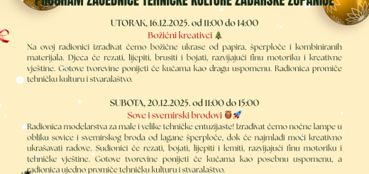 Hrvatski savez brodomaketara je na poziv Zajednice tehničke kulture Zadarske županije 15.12.2023. godine u Osnovnoj školi Zadarski otoci proveo radionicu brodomaketarstva u sklopu programa “Naš mali škver” za ukupno 60 učenika 3. i 4. razreda, a uz dvoje djelatnika Saveza (za potrebe provedbe radionica uključeno i dvoje volontera).